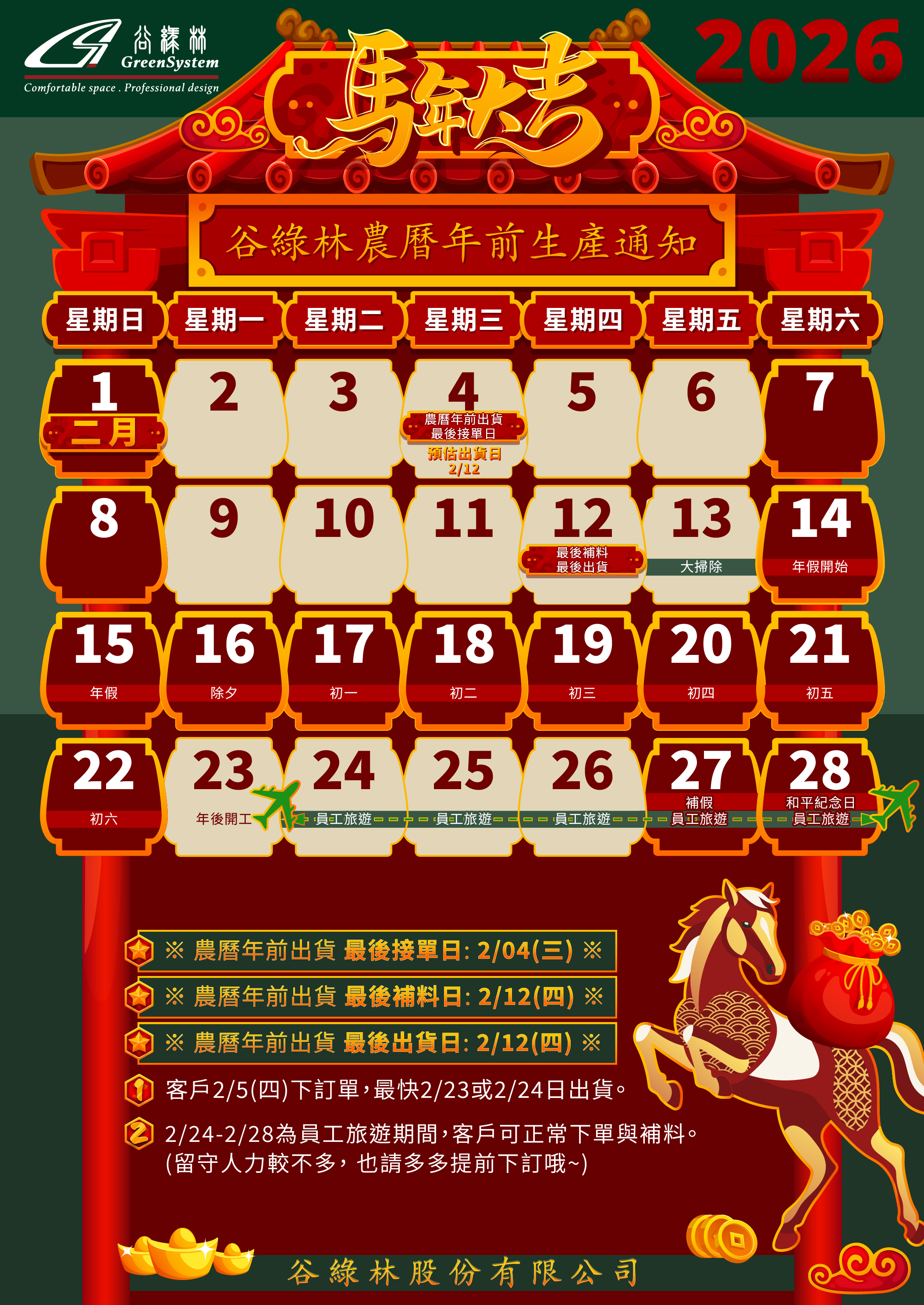 2025年 農曆年前生產通知
